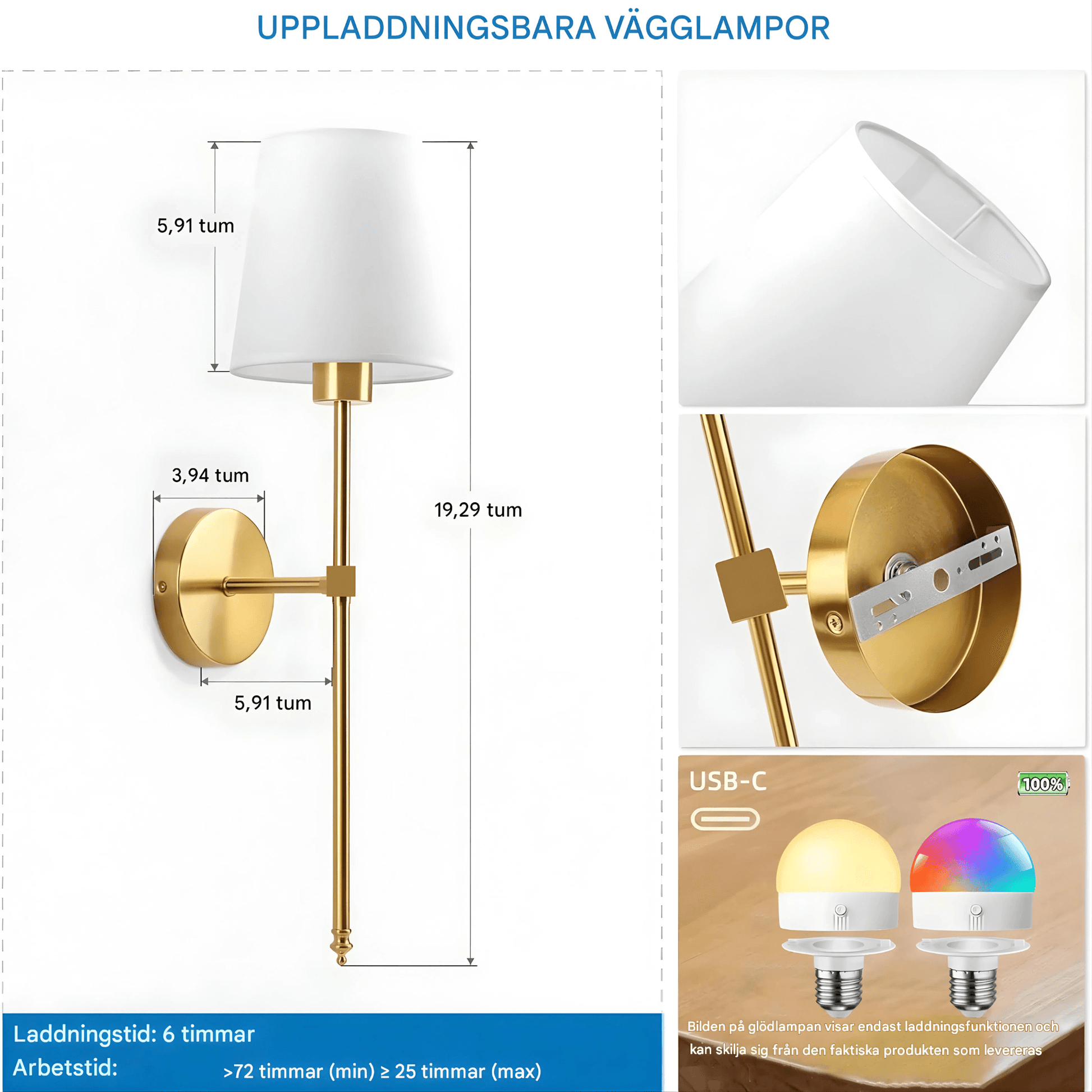 AMARA – Trådlös Vägglampa med Uppladdningsbart Batteri, Dimbart RGB-Ljus & Fjärrkontroll